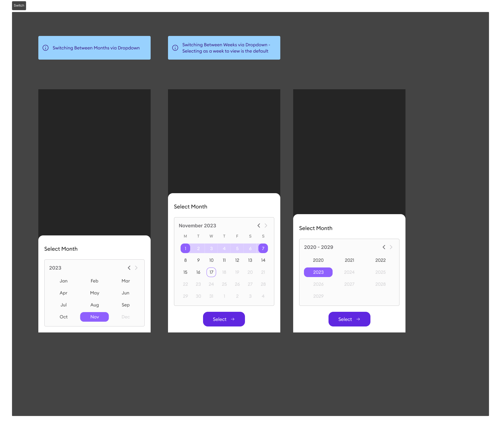 Switching between months / weeks via dropdown