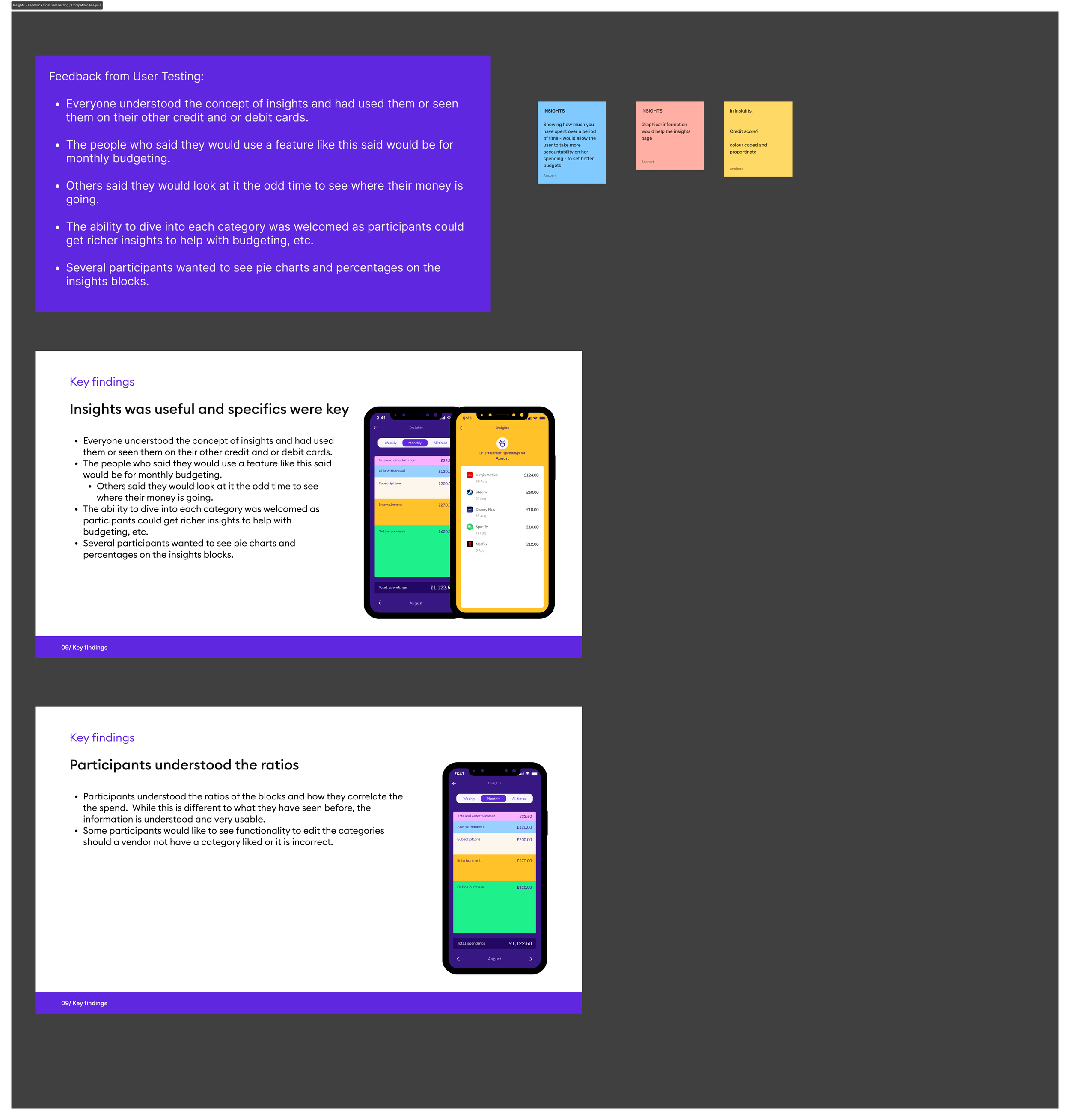 Key findings showed a common layout for insights, which influenced our approach to improve and differentiate our design.